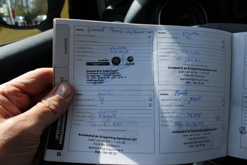 Origineel Nederlandse auto van tweede eigenaar met logisch tellerrapport. ONZE prijs is RIJKLAAR INCLUSIEF 12 maanden Bovag Garantie, nieuwe APK, afleverbeurt, de Nationale Autopas, poetsen, volle tank en kentekenleges. GEEN meerprijs voor rijklaar maken. Geen meerprijs voor garantie. Mooie, luxe, schone en zuinige Punto 5-deurs. Hoge zit, comfortabel in- en uitstappen. Inruil, verzekering en financiering mogelijk. Vast telefoonnummer 055 - 5051295. Mobiel WhatsApp nummer 055 - 505129. ST-147-V